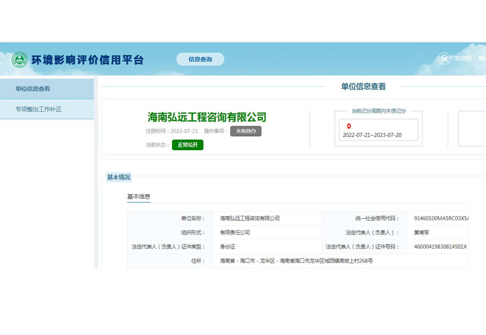 已在環(huán)境影響評(píng)價(jià)信用平臺(tái)備案